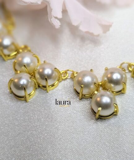 Kyra Gold Polished Earrings With White Crystals And Pearls