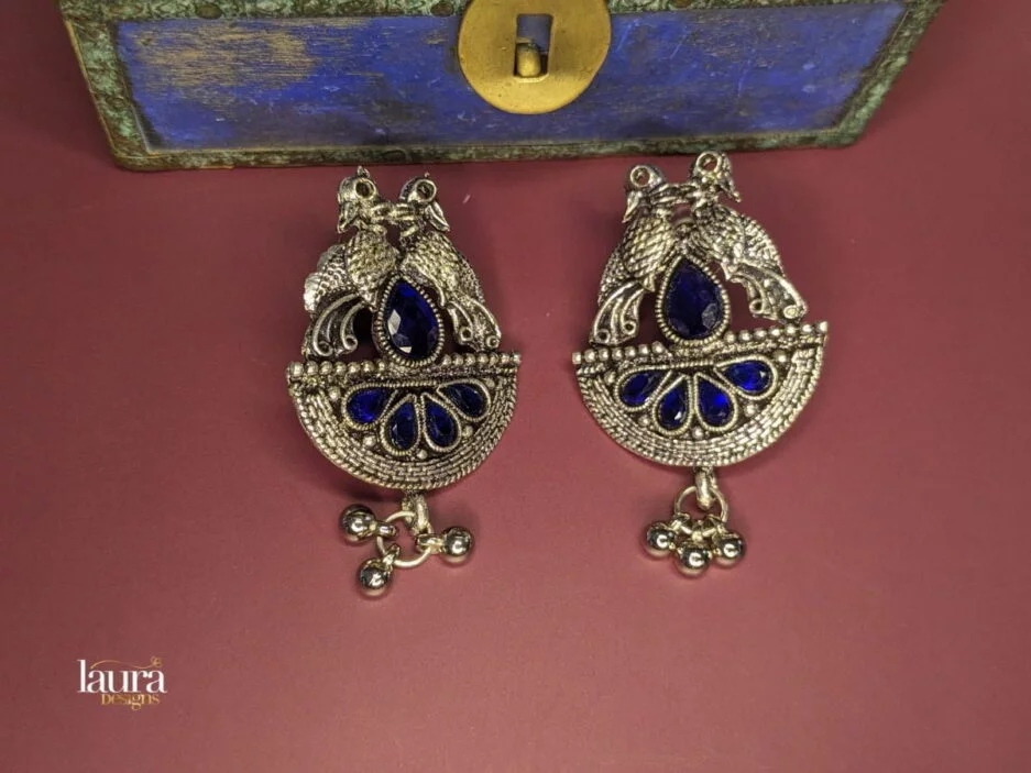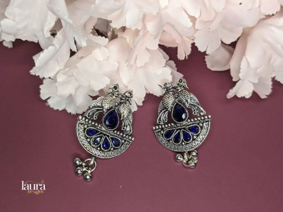 Charita Oxidised Earring with Blue Stones