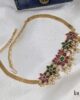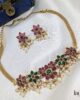 - Gold plated necklace with earrings in green colour stones.