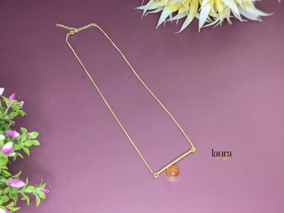 Elevate your style with our Gold Polished Chain featuring a stunning Stone Pendant—an exquisite piece that seamlessly blends sophistication with a touch of glamour.Gold plated chain with orange stone pendant neckpiece is a desirable addition to any outfit and it will instantly glow up your appearance.