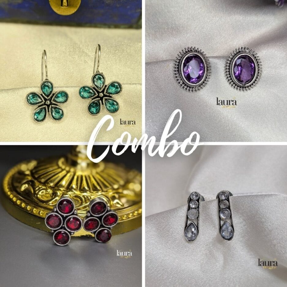 A set of 4 combo earrings featuring silver-plated studs that can be matched with both casual outfits and beautiful ethnic attire.