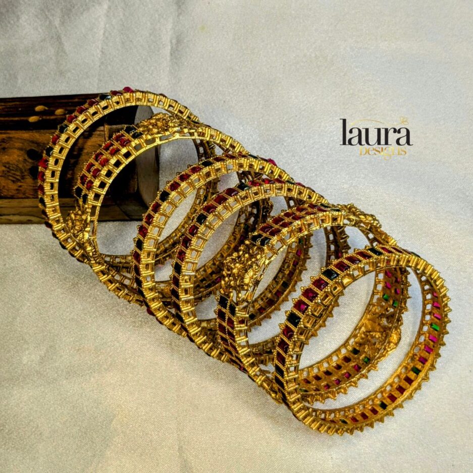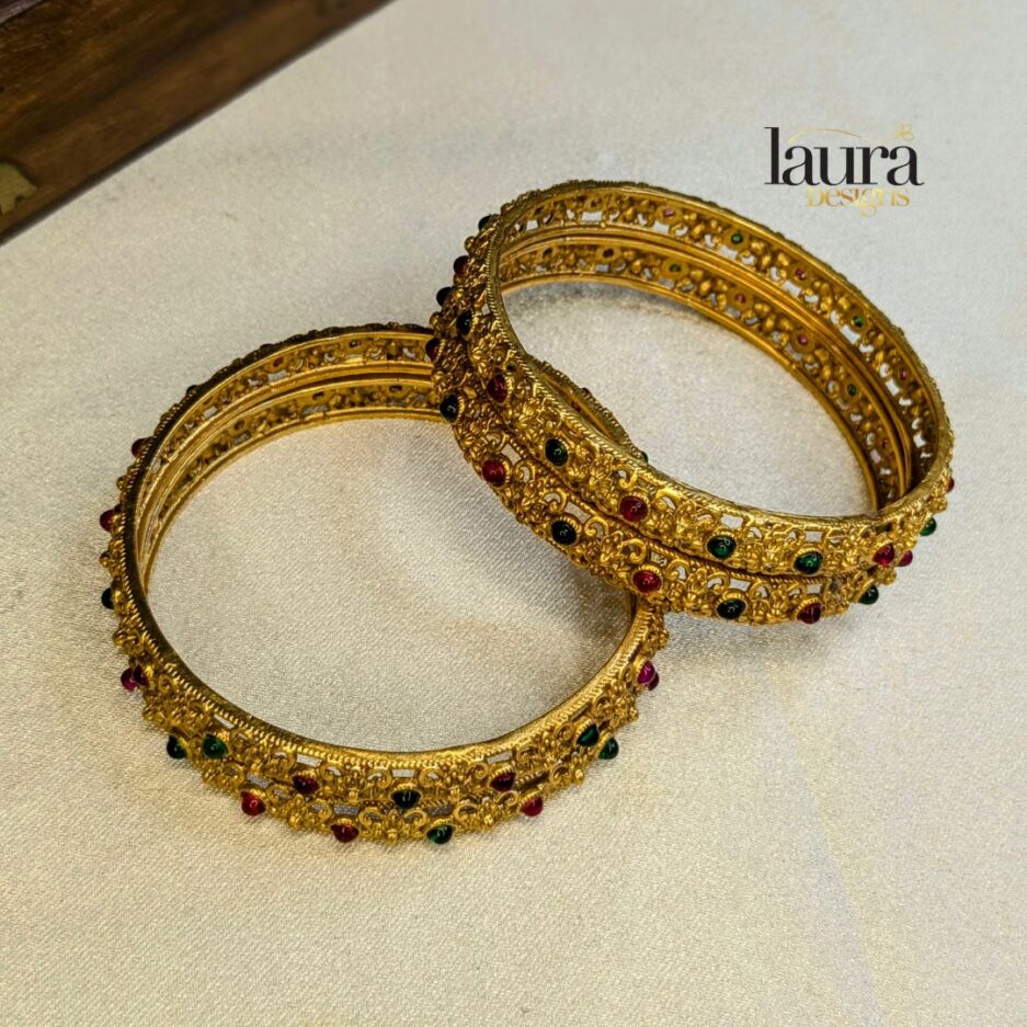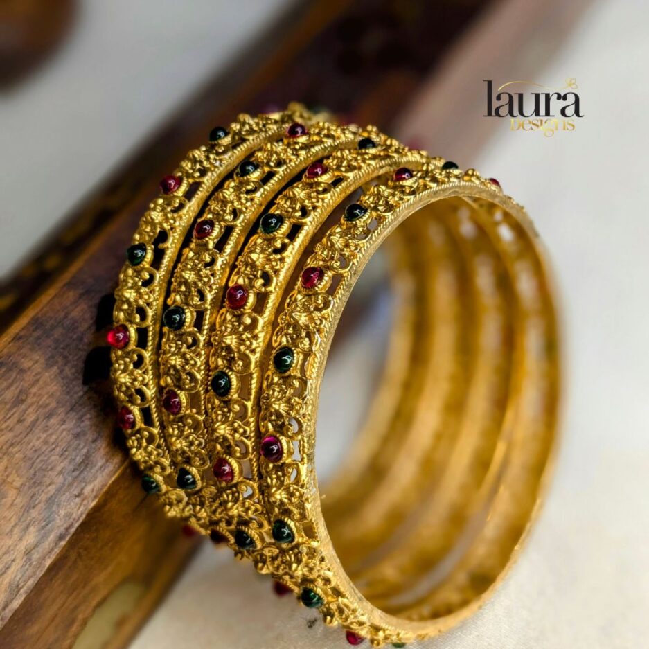 | Package content | Traditional gold polished ruby pink and green stone bangle (Set of 4) |