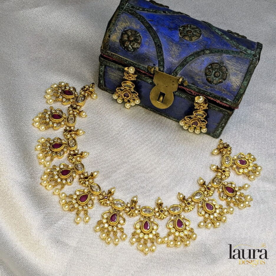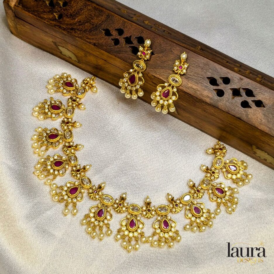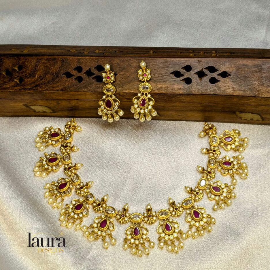 | Package content | Necklace with earrings set in pink stone and comes with an adjustable thread |